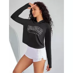 Sudadera deportiva con estampado de letra con capucha crop