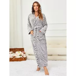 Vista rápida Carro Cart Añadir a la lista de deseos Bata con cinturón con... 43.770.146,30 Bs Bata con cinturón con estampado de letra de hombros caídos