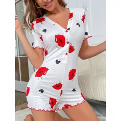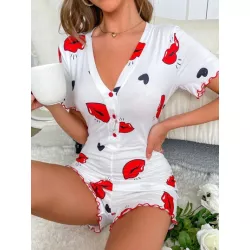 Vista rápida Carro Cart Añadir a la lista de deseos Mono de dormir con... 12,00 $ Mono de dormir con estampado de corazón unido en contraste con botón delantero