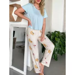 Conjunto de pijama Camiseta con estampado de letra & Pantalones con estampado floral