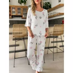 Conjunto de pijama Camiseta con estampado de letra & Pantalones con estampado floral