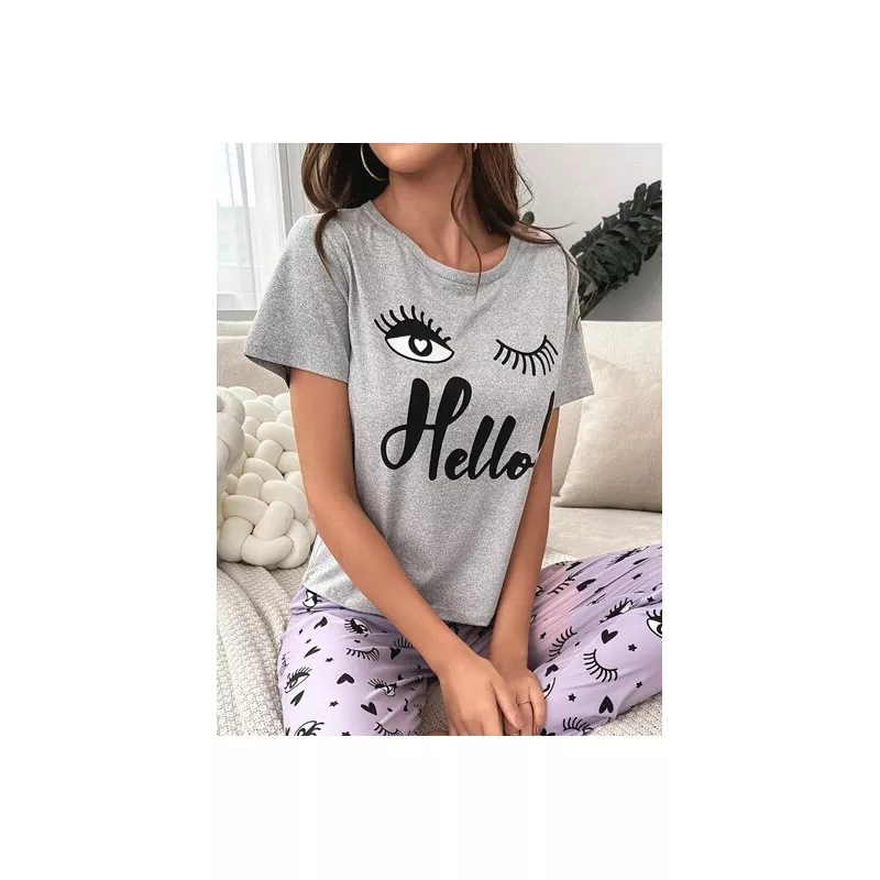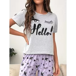 Vista rápida Carro Cart Añadir a la lista de deseos Camiseta de dormir Pestañas... 9,00 $ Camiseta de dormir Pestañas & con estampado de slogan de hombros caídos