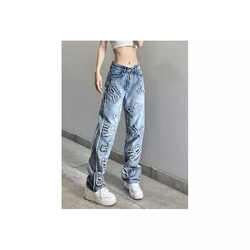 Jeans de pierna recta con estampado de letra