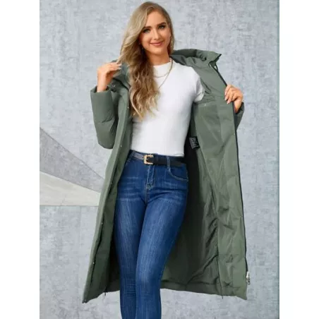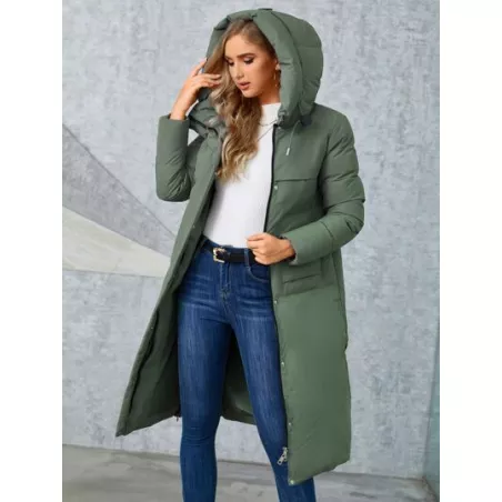 Abrigo acolchado con bolsillos oblicuos con cordón con capucha