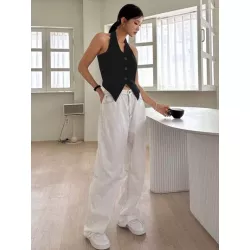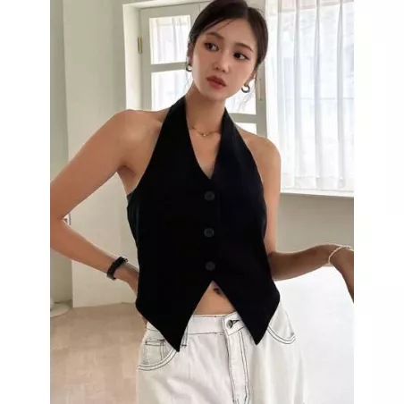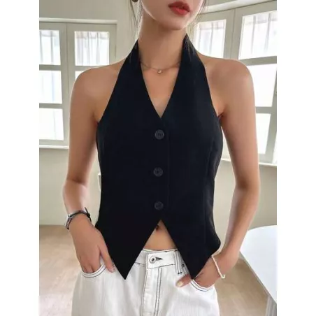 Blazer chaleco con botón delantero de espalda abierta de cuello halter
