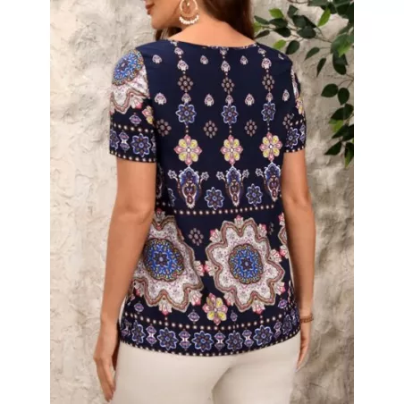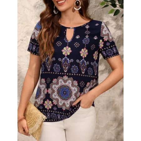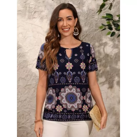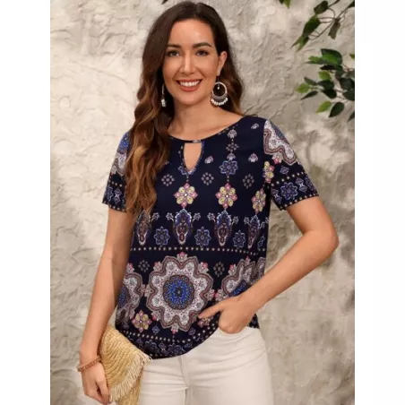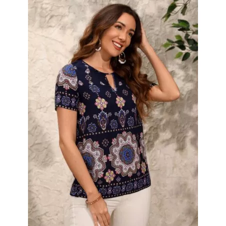 Blusa con estampado de mándala de cuello con abertura de ojo