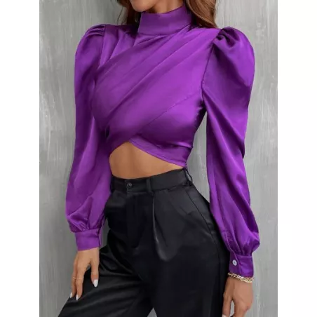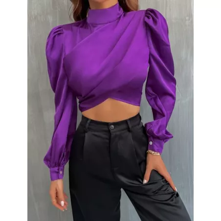 SHEIN Privé Camisa corta unicolor de manga farol