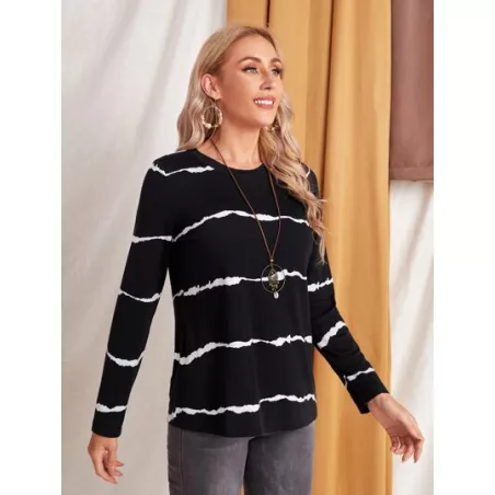 Camiseta de cuello redondo con estampado de rayas