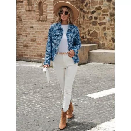 Cazadora con estampado floral con bolsillo con solapa