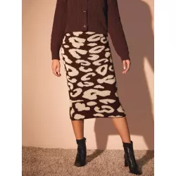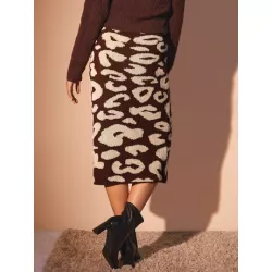 Falda de punto con patrón de leopardo recto