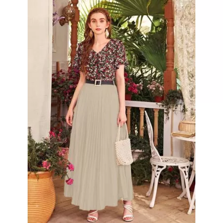 Falda unicolor fruncido maxi