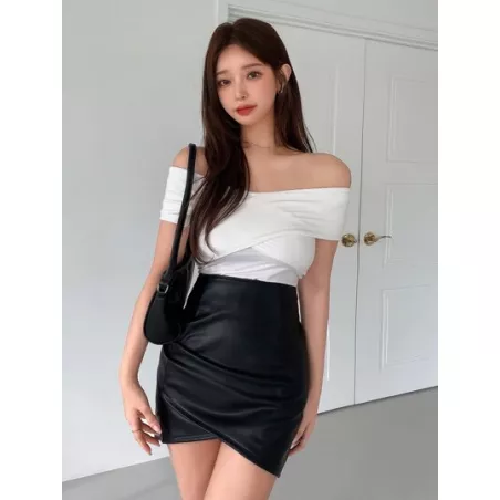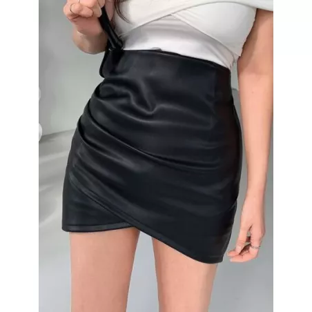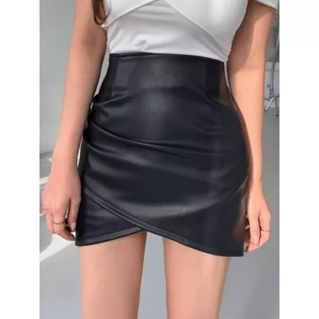 Falda unicolor bajo tulipán cuero PU