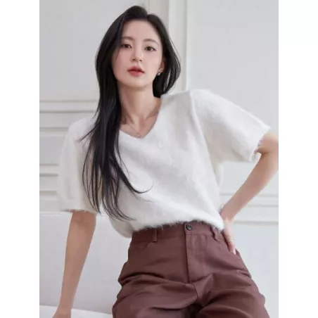 Top de punto unicolor de peluche