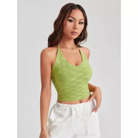 EZwear Top de punto unicolor crop halter