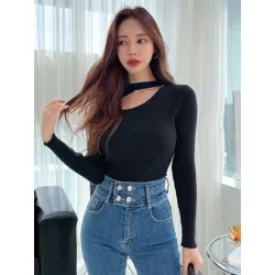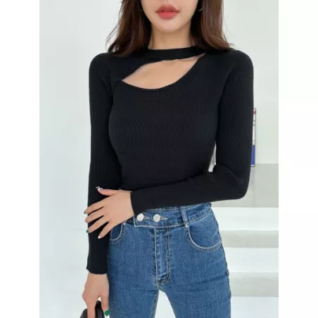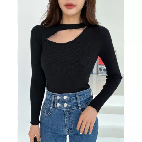 Jersey tejido de canalé con abertura
