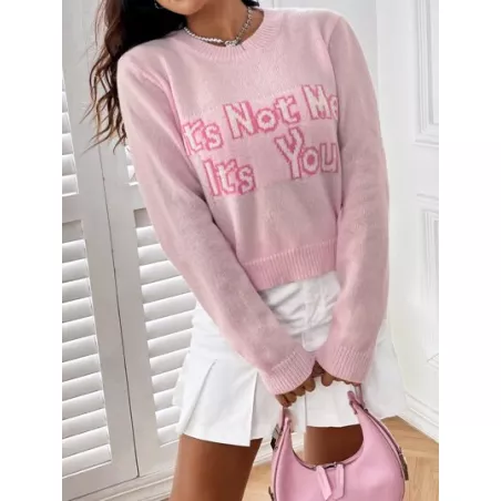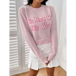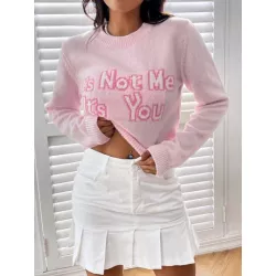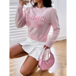 Jersey con patrón de slogan tejido de canalé