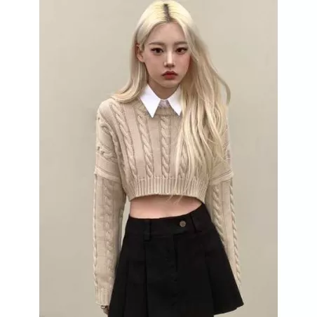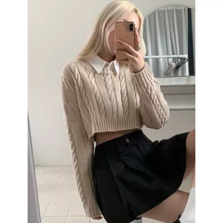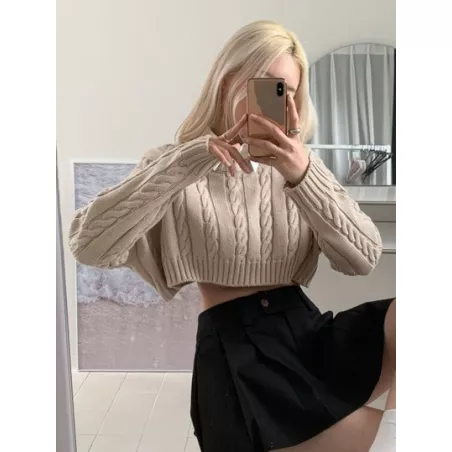 Jersey de hombros caídos tejido de cable sin camisa